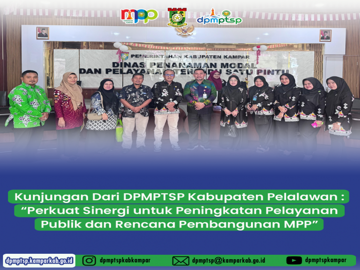 Melalui kunjungan ini, diharapkan sinergi antara DPMPTSP Kabupaten Kampar dan DPMPTSP Kabupaten Pelalawan semakin erat, sekaligus menjadi langkah nyata dalam mendukung terwujudnya pelayanan publik yang prima, cepat, dan terintegrasi bagi masyarakat.